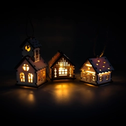 Det lille 3D træhus ligner noget fra et eventyr – med rygende skorsten, afrundede vinduer og døre samt blide bølger, der minder om et sukkerslot til en dukke. Det er ideelt som helårsdekoration til børneværelset, stuen eller til sæsonudsmykning.
