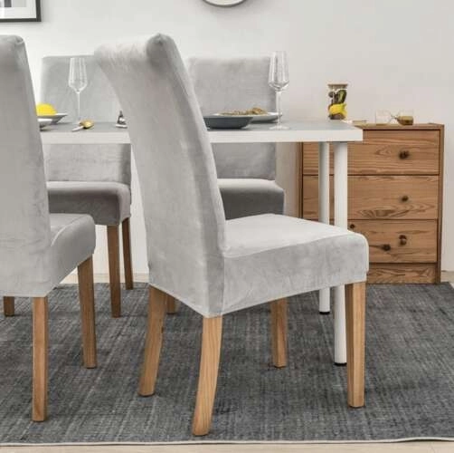 Det grå stolebetræk er designet til at give beskyttelse mod pletter og mekaniske skader. Det meget elastiske materiale sikrer en universel størrelse, der tilpasser sig perfekt til de fleste stole. Dette gør betrækket stabilt og fastholdes på plads.