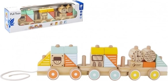 Dette trække legetøjstog tilbyder et fremragende redskab til at udvikle børns færdigheder. De enkelte dele er lavet af træ og kan nemt fjernes og sættes sammen igen, hvilket fremmer udviklingen af børns fantasi og koordination. Hvert lastdel er originalt i både form og farve, hvilket støtter udviklingen af farveforståelse.