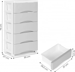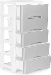 Denne rullebare skuffereol i en universel kombination af hvid og grå bringer orden i hverdagen. Perfekt til badeværelset til kosmetik og plejeprodukter, til børneværelset til legetøj og byggesæt eller til kontoret til kontorartikler. Fem dybe skuffer giver rigelig plads, og ergonomiske frontgreb sikrer behagelig udtrækning.