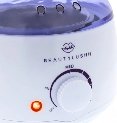 Nyd professionelle resultater af hårfjerning derhjemme. BEAUTYLUSHH voksvarmeren opvarmer hurtigt voksen og holder en stabil temperatur under hele behandlingen. Det gennemsigtige låg med ventilationsåbninger gør det muligt at kontrollere smeltningen, mens lampen signalerer, når den indstillede temperatur er nået – uden konstant overvågning og risiko for overophedning.