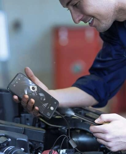 Det robuste kabel holder formen og hjælper med at udforske rør, skakte og motorrum. Nå steder, hvor et almindeligt kamera ikke kan komme til.
