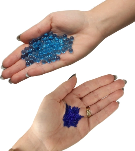 Praktiske hydrogelperler, som efter iblødsætning mangedobler deres volumen, er ideelle til sjov med gelpistoler, dekorationer og DIY-projekter samt bæredygtig vanding af planter. Pakken indeholder 50.000 stk. i blå, og efter 3–4 timer i vand vokser de til 7–8 mm. De er biologisk nedbrydelige og miljøvenlige.