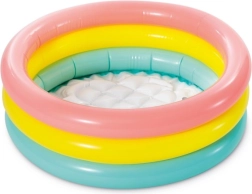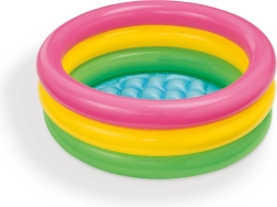 Tre oppustelige ringe i fremtrædende nuancer af pink, gul og grøn giver bassinet tiltrækningskraft og opfordrer børn til leg.