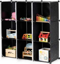 Denne modulære skabsløsning er ideel til overskuelig opbevaring af legetøj, bøger og småting. De ni separate kuber kan konfigureres frit efter rummet og barnets behov. Den lette konstruktion gør den nem at flytte og sikker at bruge selv for de mindste.