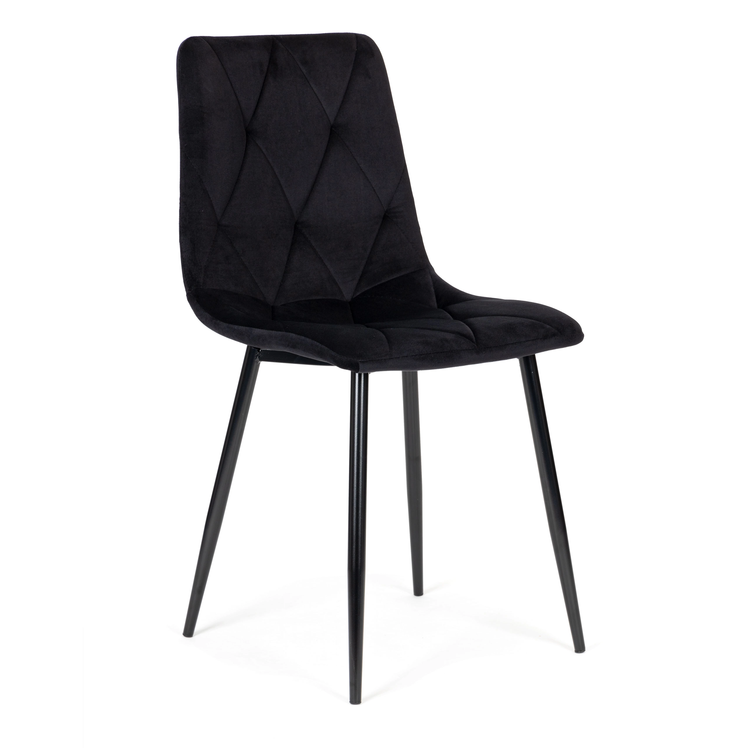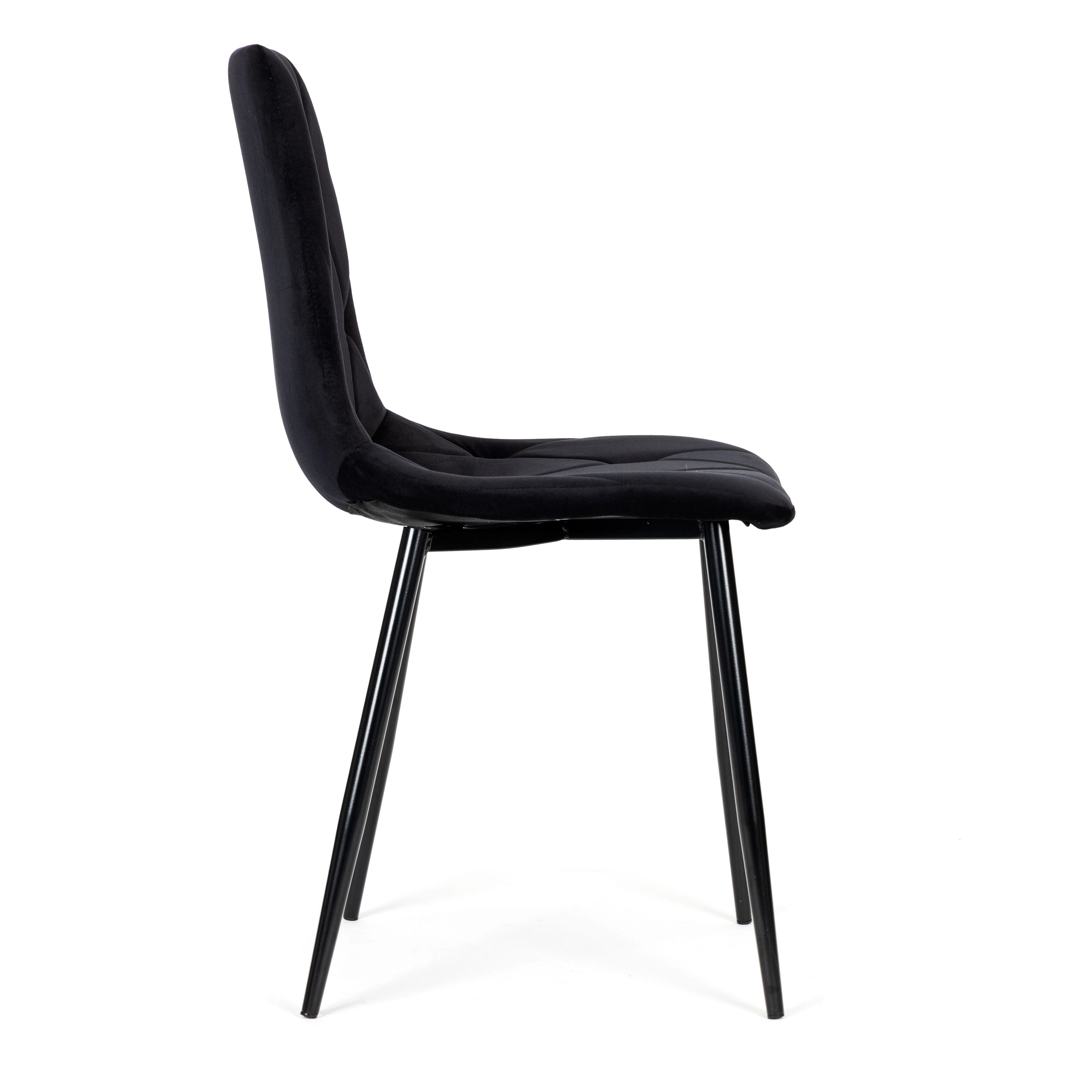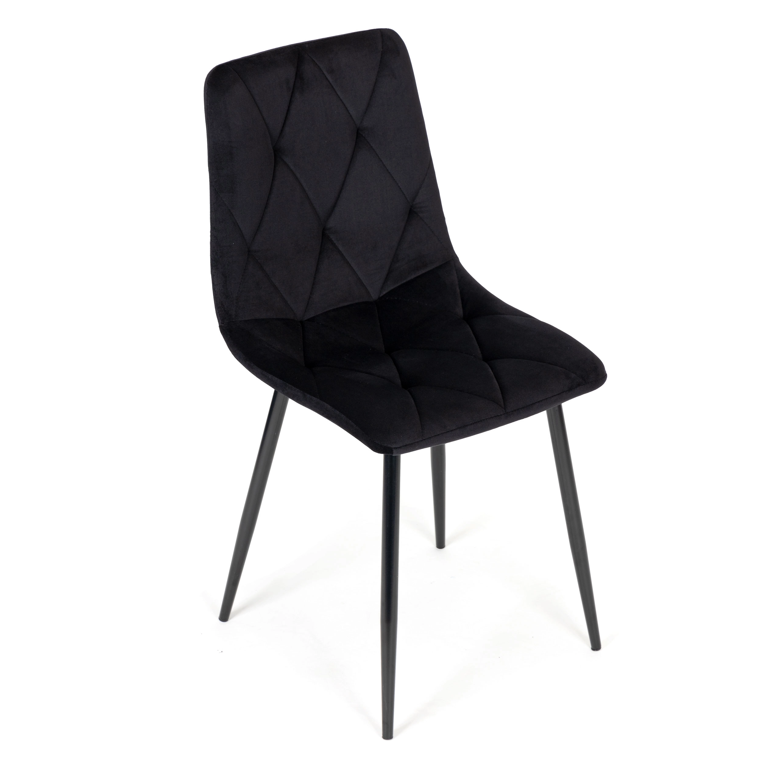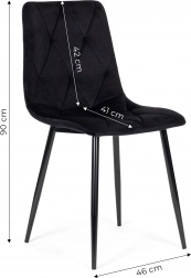 ModernHome-stolesættet udmærker sig ved sin fine velourpolstring med diamantquiltning, som virker luksuriøs og samtidig er behagelig at røre ved. De sorte metalben sikrer styrke og stabilitet, mens beskyttende endestykker forhindrer ridser i gulvet. Takket være det universelle udtryk passer stolene perfekt i spisestuen, dagligstuen, køkkenet og på kontoret.