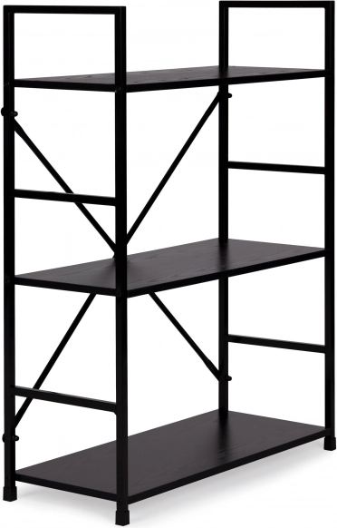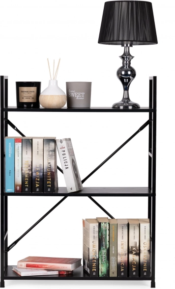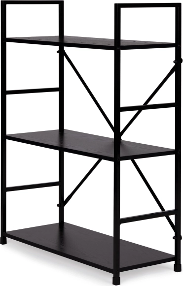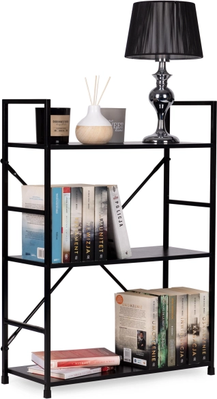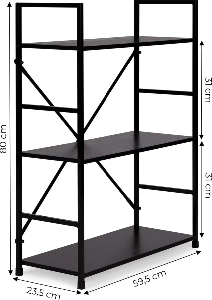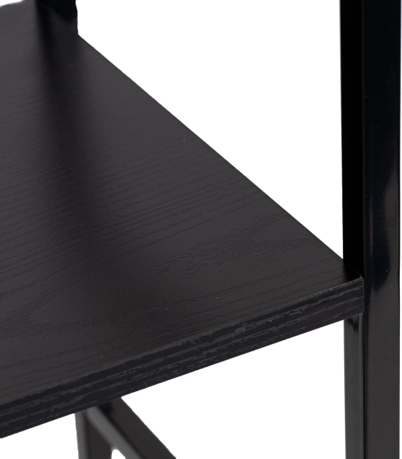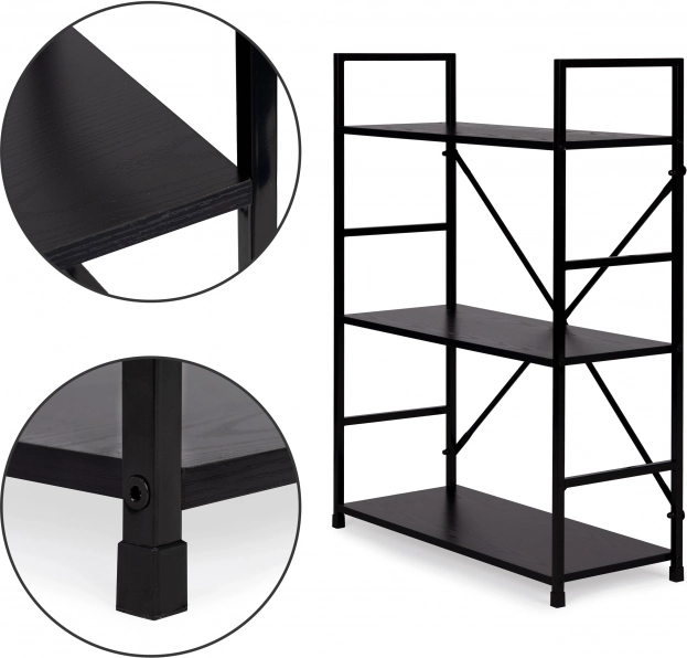 LOFT-reolen kombinerer minimalistisk design og holdbare materialer. Tre rummelige MDF-hylder med trædekor suppleres af en solid metalkonstruktion med krydsafstivning for fremragende stabilitet. Takket være det universelle sorte design kan den nemt matches med både moderne og industrielle interiører.