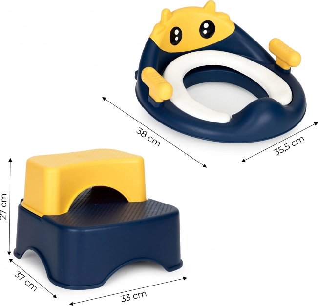 Vores toiletsæt kombinerer et kreativt design med praktiske løsninger til børn, der lærer hygiejne. Det er ikke kun et fantastisk hjælpemiddel i læringsprocessen, men også et originalt element i badeværelset. Toiletsædeforlænger hjælper barnet gradvist med at gå fra ble til toiletbrug. Platformen med to trin hjælper den lille med at nå toilettet, og desuden kan barnet bruge trinene i andre situationer, f.eks. når det ikke kan nå håndvasken.