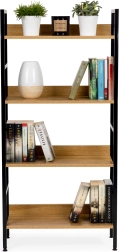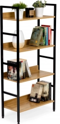Stilfuld reol i loftstil, der kombinerer træ og metal, bringer både orden og design ind i rummet. Den tilbyder 4 rummelige hylder i MDF med trædekor, en stabil metalramme med pulverlakering og justerbare fødder med beskyttelsespuder. Takket være de kompakte mål er den ideel til stue, soveværelse, entré og badeværelse og kan fastgøres til væggen for maksimal sikkerhed.