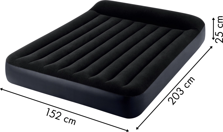INTEX velourmadras i størrelsen 203 x 152 x 25 cm er ideel til afslapning for 2 personer. Den er fremstillet af robust PVC-materiale og har på oversiden et vandafvisende velourbetræk. Det hele i en behagelig mørkeblå farve passer ind i ethvert interiør. Takket være den indbyggede elektriske pumpe (strømforsyning 220 - 240 V). Den tid, der kræves for at gøre den oppustelige seng klar til brug, er 250 sekunder. Boston-ventilen gør det muligt at tømme luften på et minut, hvorefter den kan foldes sammen og lægges i skabet.