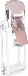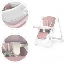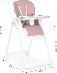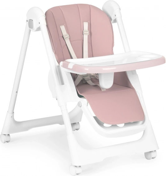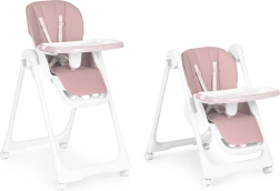 Den aftagelige dobbeltbakke har forhøjede kanter mod spild og et dedikeret sted til kop eller flaske. Efter måltidet tages den øverste bakke nemt af og rengøres, mens den nederste flade overflade er ideel til tegning og leg. Betrækket i økolæder kan blot tørres af, mens 5-punktsselet og anti-glideblokken under bakken holder barnet sikkert på plads.