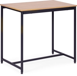 Bordet med MDF-plade i imitert eg er ridsebestandigt og nemt at vedligeholde. Det er ideelt til daglig brug som spisebord eller arbejdsbord.