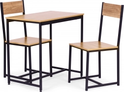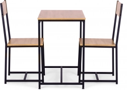 Dette møbelsæt består af et robust bord og to stole, der er perfekte til moderne boligindretning. Det enkle og alsidige design gør det nemt at integrere i forskellige typer interiør. Sættet tilbyder den ideelle løsning til mindre lejligheder, kontorer eller venteværelser.