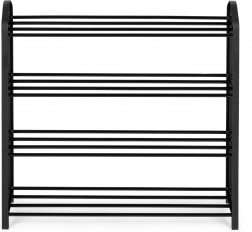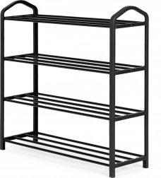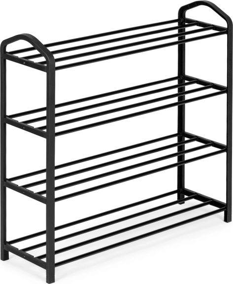 Hver hylde består af fire pulverlakerede metalrør, som er indsat i sider lavet af holdbar plast. Med en højde mellem hylderne på 16 cm giver den tilstrækkelig plads til opbevarede sko, sneakers og damesko. Samlet højde på skoskabet er 62 cm, bredde 62 cm og dybde 19,5 cm, hvilket gør det kompakt og pladskrĂŚvende.