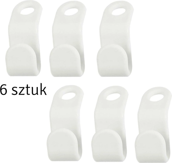 Sæt med 6 robuste ophængsorganisatorer. Gør det muligt at hænge endnu et par tøjstykker eller bøjler på en anden bøjle. De kan hænges lodret, den ene under den anden. En ideel måde at spare plads i et trangt klædeskab. Fremstillet af holdbar plast for lang og problemfri brug.