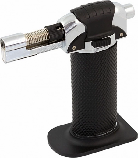 - Inklusive knap til gasregulering, ventil til genopfyldning og funktionsvælger – trykbrænder eller konstant flamme (tænd brænderen med luftstrøm og drej den derefter 90 grader).