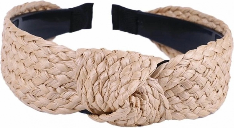 Rattan hårbøjle med en markant dekorativ knude. Indvendigt er der en standard hårbøjle af plast.