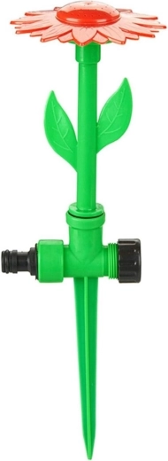 Automatisk havevander formet som en blomst. Den solide base (drevet i jorden med en spids) forhindrer, at vanderen vælter under vandtryk. Stor sprøjtedyse i den øverste del af enheden. Meget nem at betjene, kræver kun tilslutning af en slange og åbning for vandet. Velegnet til haveslange med 1/2''-kobling.