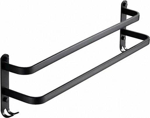 Stilfuld vægmonteret håndklædeholder i metal i moderne loft-stil. Fremstillet af holdbar aluminium med pulverlakering i mat sort, hvilket sikrer lang levetid og modstandsdygtighed over for fugt og slitage. Dette praktiske tilbehør til dit badeværelse tilbyder to arme til ophængning af håndklæder samt ekstra kroge nederst for endnu mere opbevaringsplads.