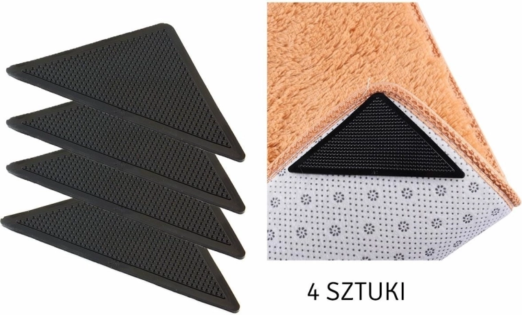 Sæt med 8 skridsikre måtter til tæpper eller gulvtæpper! Sættet indeholder 4 gummimåtter og 4 selvklæbende måtter, som muliggør sikker fastgørelse af måtterne på stort set enhver overflade. De fungerer perfekt som underlag til tæpper og løbere på glatte overflader og forhindrer utilsigtet væltning og krølning.