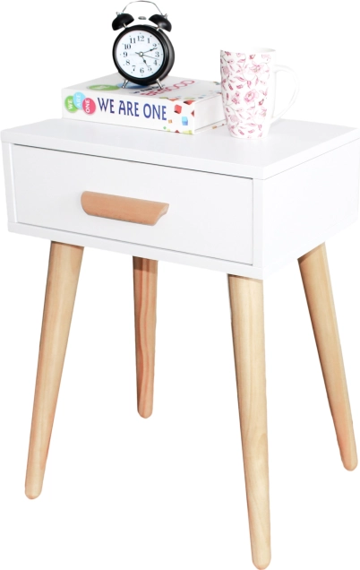 Den praktiske skuffe til opbevaring rummer småting – fra briller og opladere til notesbog eller fjernbetjeninger. Takket være den kompakte størrelse passer den også i mindre rum og fungerer som natbord, aflægningsbord ved sofaen eller et lille børnebord til læsning og kreativitet.