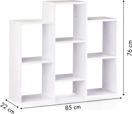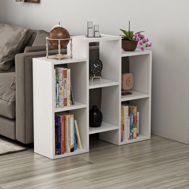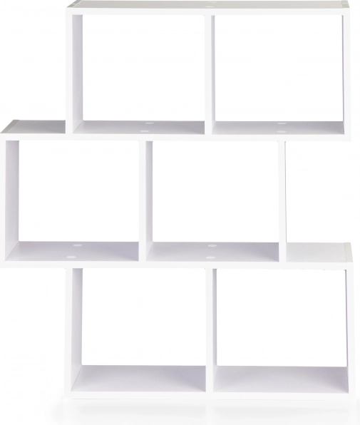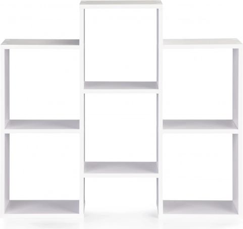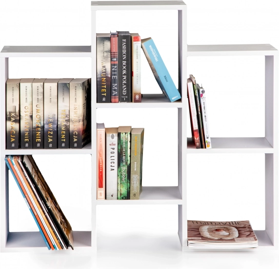 Skab et overskueligt og æstetisk opbevaringssted til bøger, magasiner og dekorationer. Denne hvide reol med åbne hylder udmærker sig ved rene linjer og tidløs geometri, som passer til moderne interiører. Takket være den drejelige konstruktion kan du tilpasse reolen til rummet og ændre orienteringen efter behov.