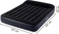 Den oppustelige INTEX-seng er ideel til to personer – perfekt til gæster, sommerhus og camping. Toplaget med blødt velourbetræk er vandtæt og behageligt at ligge på, mens det robuste PVC sikrer holdbarhed. Den indbyggede elektriske pumpe (220–240 V) gør sengen klar på cirka 250 sekunder, og den store ventil muliggør hurtig tømning og nem sammenpakning.