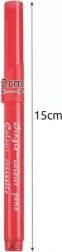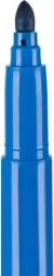 Billedet viser et nærbillede af en blå plasttusch med en mørk spids, designet til præcision ved tegning eller skrivning. Dens glatte plastkrop indikerer nem håndtering.