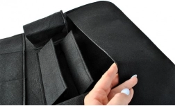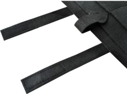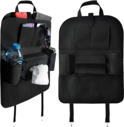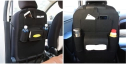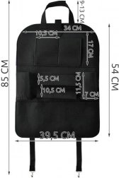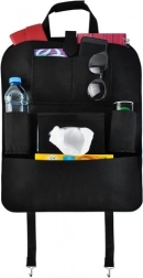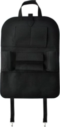 Organisatoren er lavet af filtmateriale, som sikrer dens lethed og nemme håndtering. Installation af organisatoren er hurtig og intuitiv: den øvre del fastgøres til den nedre del af nakkestøtten med velcro, og den nedre del fastgøres med metalhægter til sædet.