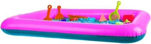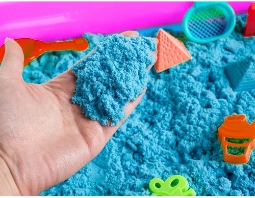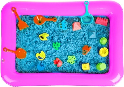 Børnesand med magiske egenskaber er en fantastisk gaveidé til ethvert barn. Med sådan sand kan man lege med succes selv derhjemme. Når det blæser, regner eller sner udenfor, er der intet, der hindrer børnenes kreativitet – det er nok at have en pool med magisk sand og slippe fantasien løs! Børnesættet til sand indeholder 14 plastikforme, en rive, en si, en skovl og en tragt. Med sådan tilbehør kan man ikke kede sig. Sættet indeholder også en oppustelig sandkasse, som hjælper med at holde orden på legefladen.