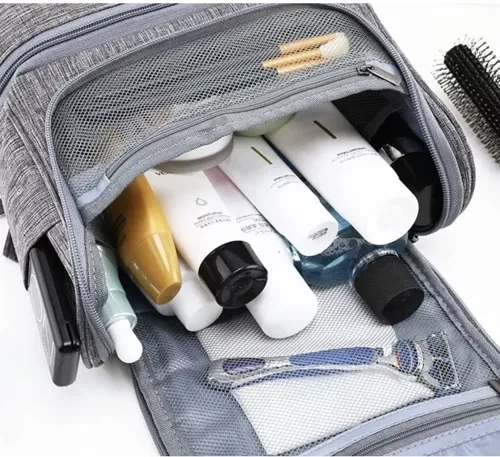 Med flere lommer og mulighed for ophængning tilbyder denne taske perfekt organisering af dine kosmetikartikler.