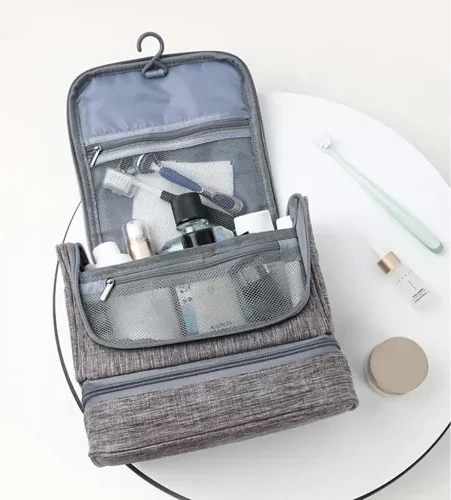 Denne rummelige kosmetiktaske er designet til opbevaring og organisering af alle de vigtige personlige fornødenheder, du behøver på rejsen. Den er vandafvisende og kan nemt hænges op et passende sted takket være krogen.
