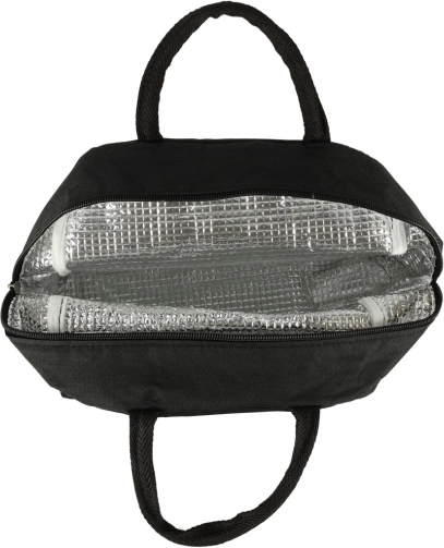 Med det rummelige hovedrum opbevarer du nemt både madkasse og drik. Frontlommen er ideel til bestik, servietter eller telefon. De robuste tekstilhanke sikrer komfortabel bæring, og det ensfarvede materiale er let at rengøre.