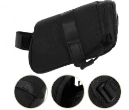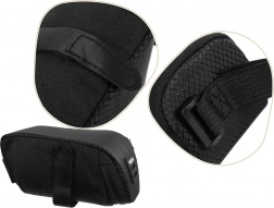Tasken fastgøres til sadelpinden og sadlen med velcro, hvilket sikrer stabilitet og eliminerer uønskede bevægelser under kørsel.