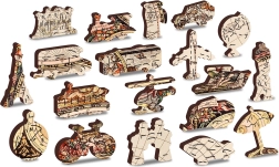 Specialformede brikker i form af dyr, bygninger og genstande giver lægningen en ny dimension. Præcis laserfremhævning af detaljer og en kvalitets-HDF-plade (3–4 mm) sikrer holdbarhed og en behagelig følelse ved håndtering. Puslespillet er desuden EKO-venligt 100%: emballagen er helt uden plast, og brikkerne er lagt i en papirpose i æsken.