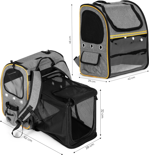 Rejs sikkert og komfortabelt med dit kæledyr. Denne rummelige rygsæk kombinerer en stærk og sikker konstruktion med gennemtænkte detaljer for både din og dyrets komfort. Den gennemsigtige front lader din makker følge med i omgivelserne, mens netpaneler og ventilationsåbninger sikrer en stabil tilførsel af frisk luft.