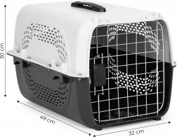 Metaldøren med sikkerhedslås gør håndteringen nem og giver dig fuld kontrol over kæledyret. Takket være den glatte overflade er kassen let at holde ren, og den kan bruges ikke kun som transportkasse, men også som midlertidig seng.