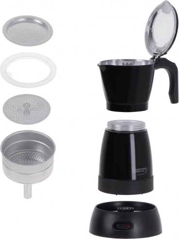 Nyd den fulde smag af mokkakaffe uden komfur. Den elektriske moka-kande CAMRY skaber tryk inde i kroppen under ekstraktionen, hvilket giver aromatisk espresso med rig smag. Aluminiumskroppen sikrer optimal varmeledning og holdbarhed, og det kompakte design passer perfekt i køkkenet, på kontoret og på rejsen.