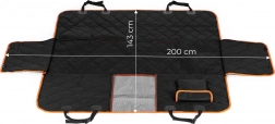 Leder du efter pålidelig beskyttelse af interiøret, når du rejser med hund? Dette PETSI-bagsædeovertræk har universel størrelse og dækker hele bagsædebænken inklusive de bageste dele af forsæderne. Det slidstærke vandtætte stof beskytter mod fugt, mudder og hår, mens den skridsikre bund og justerbare remme med spænder holder overtrækket sikkert på plads.
