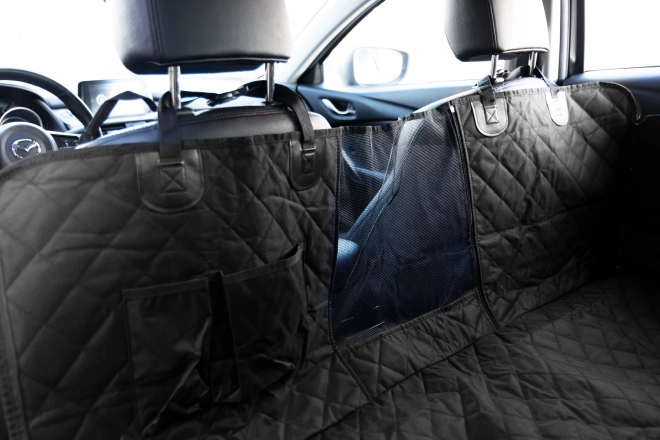 Det quiltede, robuste betræk dækker hele bagsædebænken og beskytter polstringen mod hår, mudder og ridser. To lommer holder line, godbidder og småting lige ved hånden.