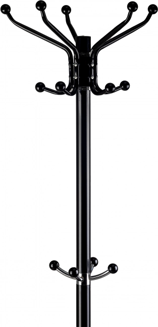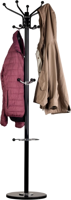 Øverst er der fem arme, hvorpå der kan hænges to jakker pr. arm. Midt på højden er der ekstra kroge, velegnet til hatte, paraplyer eller tasker.