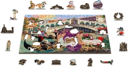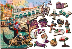 Træpuslespillet WOODEN CITY Venetiansk karneval 2-i-1 byder på et smukt motiv med atmosfæren fra VENEDIG og en unik læggeoplevelse. Den dobbeltsidede udførelse gør det muligt at lægge enten efter billedet eller på bagsiden efter et gentagende mønster, hvilket øger sværhedsgraden og forlænger fornøjelsen. Takket være præcis laserbearbejdning er kanterne glatte, og brikkerne passer perfekt.