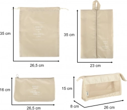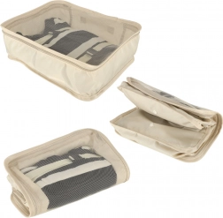 Organisatorerne er fremstillet af let og slidstærk polyester, som er nem at rengøre og godt modstår snavs. Sættet er ideelt til ferier, forretningsrejser og opbevaring derhjemme.