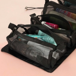 Den sammenfoldelige rejsetaske fra Leegoo er den perfekte rejsepartner. Med stor kapacitet og fire adskilte rum muliggør den effektiv pakning af mange produkter. Hvert rum er udstyret med lynlås for sikker opbevaring, og netpanelerne sikrer nem identifikation af indholdet.