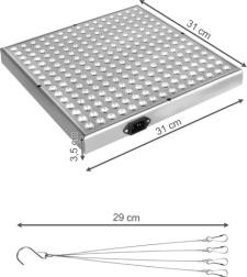 Installationen er hurtig og uden besvær: tilslut panelet til strøm og hæng det over planterne med de medfølgende wirer. De kompakte mål 31 × 31 × 3,5 cm og den lette konstruktion gør det nemt at placere i drivhus, growboks eller på vindueskarmen derhjemme.