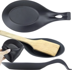 Farvel til pletter fra saucer og supper på køkkenbordet. Denne silikone-aflægger til ske giver et sikkert sted til skeer, øser og vendere, når du rører eller serverer. Den absorberer ikke lugte, er let at rengøre, og takket være hullet i enden kan den nemt hænges op.