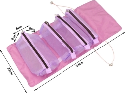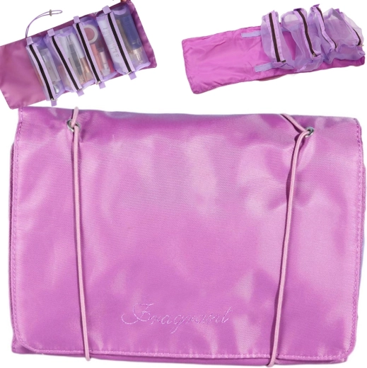 Rummelige, gennemsigtige lommer holder dine makeup-produkter og tilbehør overskueligt og sikkert. Hver lomme kan takket være velcro tages ud og omorganiseres.