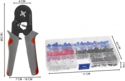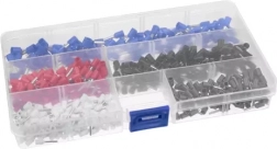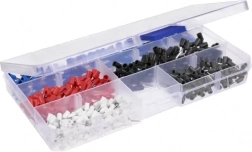 Sættet indeholder 500 terminalhætter i forskellige størrelser i en praktisk plastikorganizer.