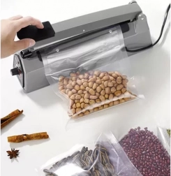 Håndholdt foliesvejser er den ideelle enhed til hermetisk forsegling af emballager, som hjælper med at bevare fødevarers friskhed og beskytte mod fugt og lugte. Dette produkt giver enkel betjening med indstilling af svejsetid, hvilket muliggør pålidelig og nem forsegling af forskellige typer plastemballager.