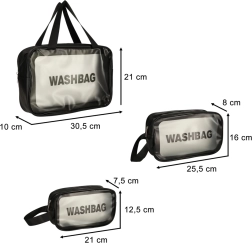 Hver taske er udstyret med en praktisk lynlås og et håndtag for nem transport. De er ikke kun velegnede til opbevaring af kosmetik, men kan også rumme andre ting.
